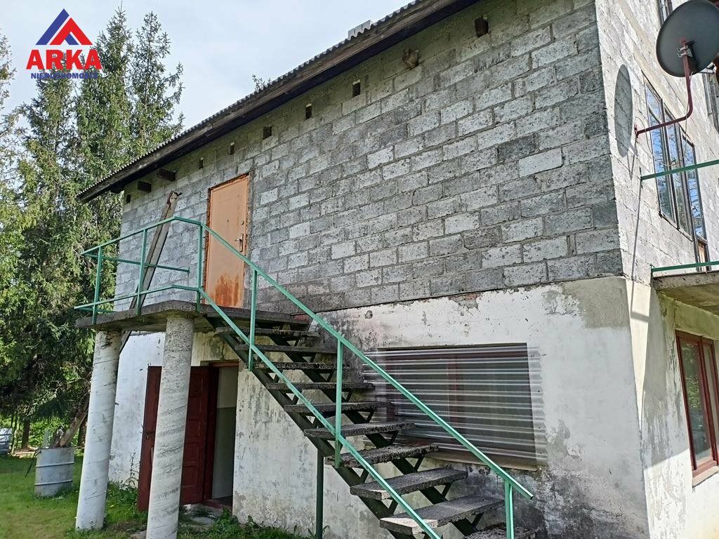 Dom w stanie surowym otwartym, wybudowany w latach 90-tych z pustaka, kryty płytą bitumiczną (tzw. ondulina).